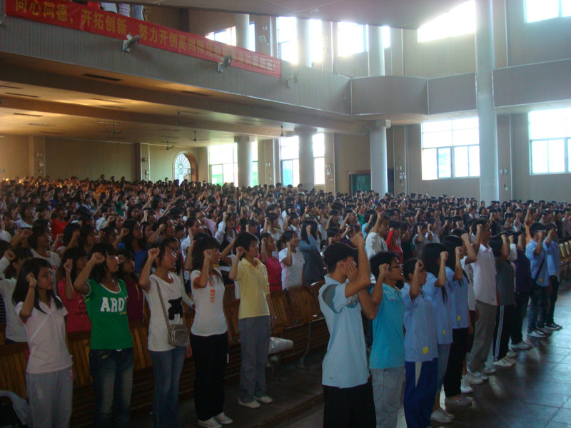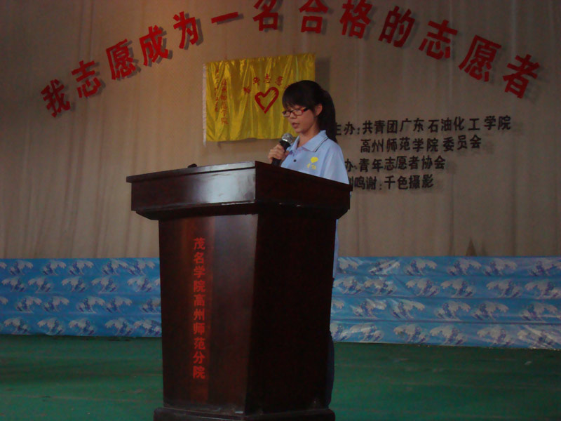 动员大会首先发言的是苏文胜书记,他对青协的工作予以肯定,对新会员提出了殷切的希望,并号召同学们做一名合格的志愿者,服务于校园,服务于社会。接着旧生志愿者代表、青协副会长李燕鸿对青协上学年度的工作作了回顾与总结,并对新一学期的活动计划作了详细报告和为母校80周年送上了真诚的祝福。接着的是新生志愿者代表杨燕芬发言,她道出了作为一名新生志愿者应有的责任与义务,并号召新生志愿者为母校80周年华诞奉上一份微薄的力量。之后在领誓人带领下,全体志愿者进行了宣誓,进入了会议的高潮。最后大会展示会员签名的千人横幅,并奏响了《志愿者之歌》,在令人激昂的歌声中,大会取得了完满结束。