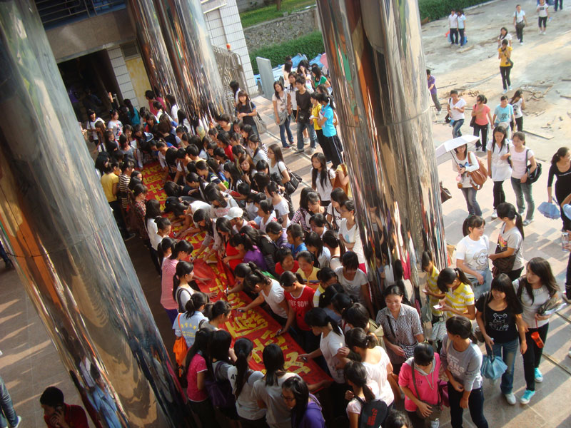 青年志愿者协会成员集中会堂门前,进行签名活动