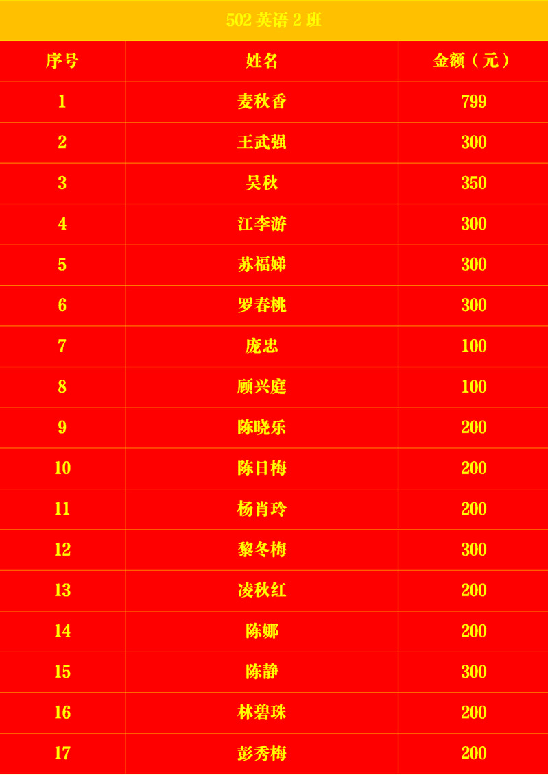 在此次捐赠活动中,502英语2班共筹集捐款10599元,502英语3班共筹集捐款10200元。每一笔捐款背后都是一份沉甸甸的情谊,这种延续性的善举彰显了校友与母校之间深厚的情感纽带,充分展现了校友群体凝心聚力、反哺母校的集体力量。