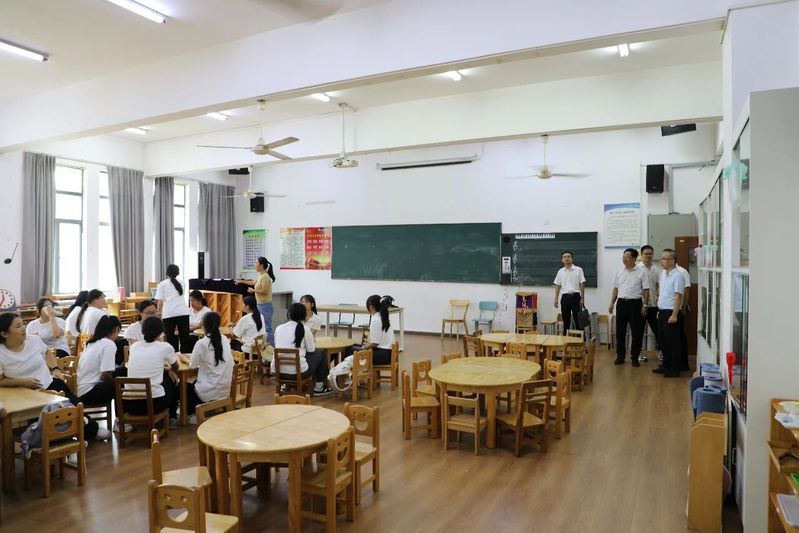 座谈会前,调研组深入校史馆、美术展览馆、智慧教室、教学实验实训室等场所进行了实地考察,详细了解学校的校园建设、校园文化、教学实训以及信息化建设等方面的内容。调研组还深入323学前教育1班调研,该班级是双方合作办学开展协同育人的班级,两校领导勉励同学们要珍惜韶华、奋发向上,努力成长为德智体美劳全面发展的社会主义建设者和接班人。