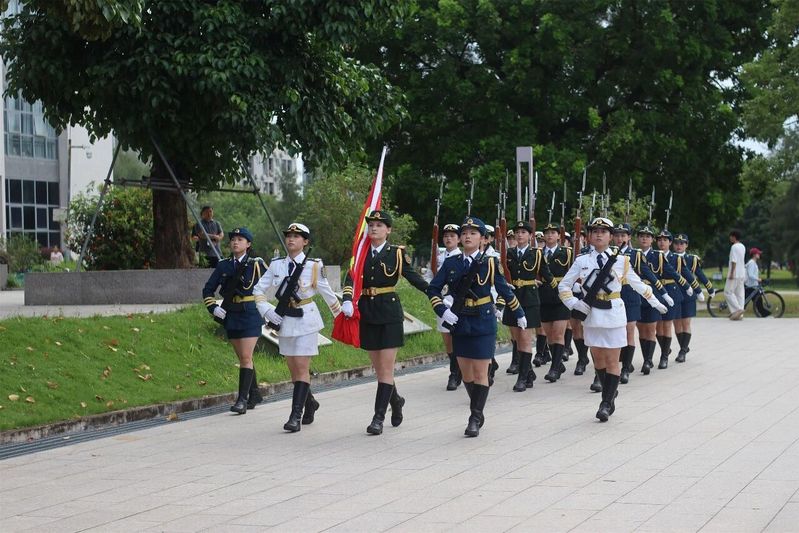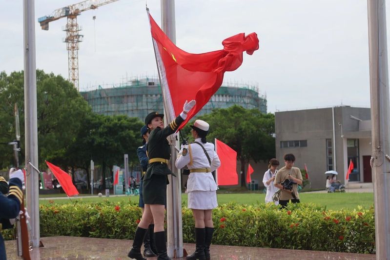 大会伊始,我校国旗护卫队队员们迈着整齐而坚定的步伐走向升旗台。在庄严的国歌声中,全体师生注视着五星红旗徐徐升起。随后,国旗护卫队举行了升校旗仪式。