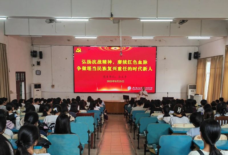 9月25日,广东茂名幼儿师范专科学校党委书记余义才以《弘扬抗战精神,赓续红色血脉,争做堪当民族复兴重任的时代新人》为题,在高州校区师训楼218室为2025级新生代表开讲2025年秋季学期“思政第一课”。学校相关部门负责人、二级学院教师代表一同聆听授课。