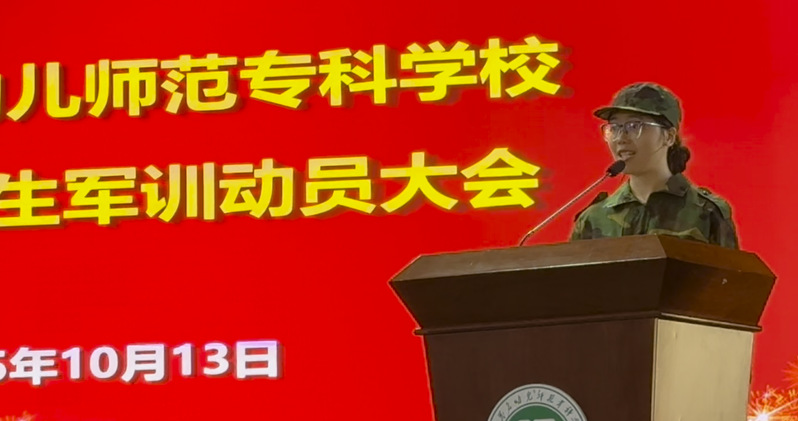 美术学院2025级书画艺术专业潘韵仪与文学院325语文教育专业5班崔丽筵分别作为新生代表作了发言。她们表示,将服从命令,听从指挥;团结协作,互助友爱;巩固成果,传承精神。