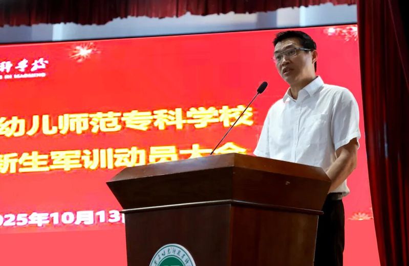 姚大斌作动员讲话,他表示,要坚持训练,迎难而上。要发扬顽强拼搏的善战精神,敢于面对困难和挑战,以实际行动展现新时代学子的精神风貌。要遵守纪律,服从指挥。要把“令行禁止、步调一致”的军规内化于心、外化于行,严格遵守各项规章制度,绝对服从指挥安排,主动树牢纪律意识、锤炼自律能力。要勤奋学习,开拓进取。要珍惜训练时光,既要下苦功钻研军旅技能、领悟纪律精神,更要在实践中主动思考、积极探索,为将来的学业和事业奠定坚实基础。要牢记安全,加强保障。要时刻绷紧安全之弦,严格遵守安全规定,主动学习防范知识,切实提升自我保护能力。学校相关部门要切实扛起责任,细化服务举措,全力提供安全、优质、高效的服务,为军训保驾护航。