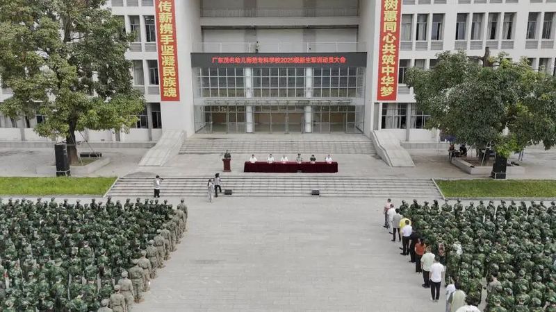 10月13日上午,我校分别在茂名校区荟文广场和高州校区会堂举行2025级新生军训动员大会。出席茂名校区新生军训动员大会的有:学校党委书记余义才,茂南区区委常委、人民武装部部长林大全,学校党委专职副书记吴月明,党委委员、纪委书记莫明波,党委委员、副校长吴标;出席高州校区新生军训动员大会的有:党委副书记、校长姚大斌,高州市人民武装部军事科参谋华杰文,党委委员、副校长吴东。学校党委班子其他成员,学生工作部(武装部)负责同志、各二级学院行政领导,校医室负责同志及医护人员,两校区军训团全体成员,新生辅导员、新生班主任,2025级全体新生参加了大会。吴月明、吴东分别主持两校区的大会。