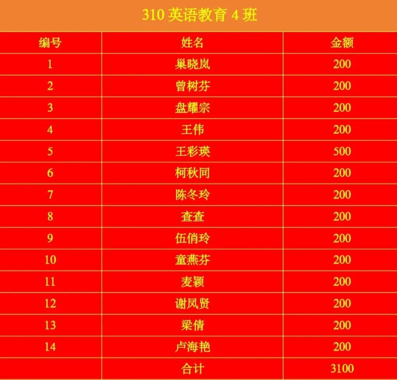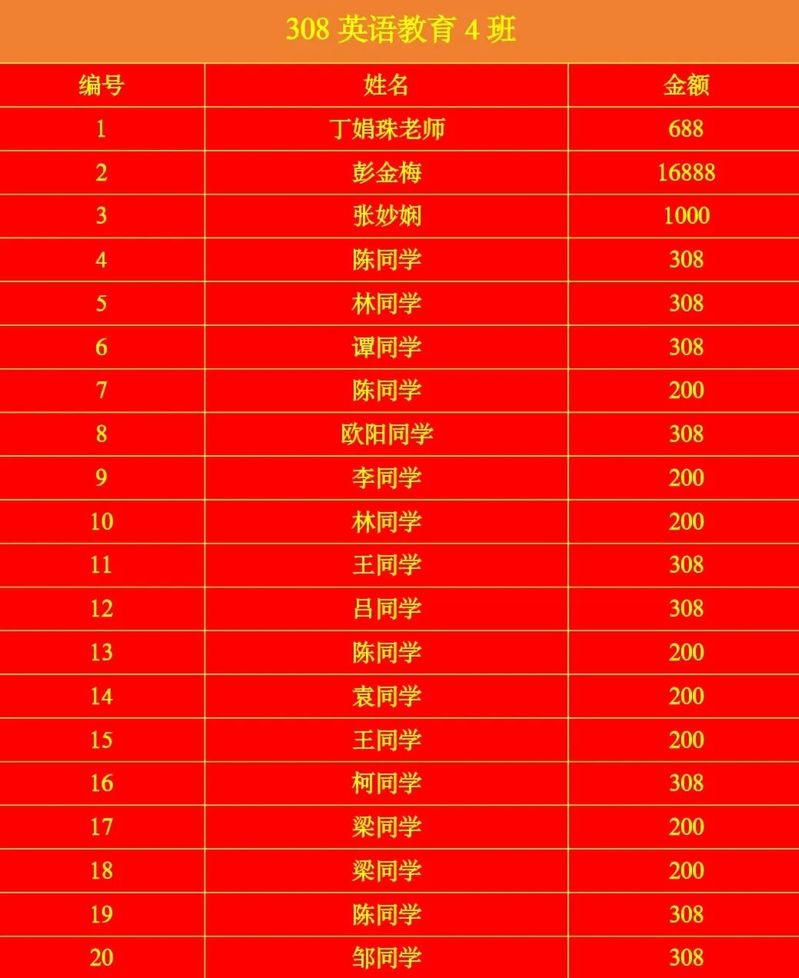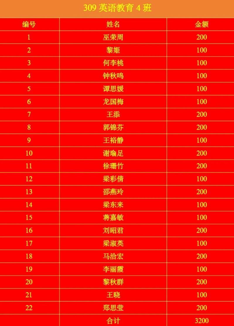 在广东茂名幼儿师范专科学校喜迎师范教育120周年华诞、全校上下同心同德推进内涵式发展的热烈氛围里,外国语学院校友反哺母校的深情持续升温。近日,又有18个班级的校友相继加入教学功能室捐建行列,用实际举措续写爱校情怀,具体捐赠情况如下: