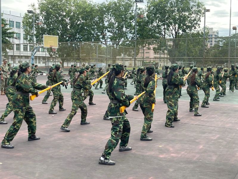 “向左转!”“向右转!”,军训的口令干脆利落,响彻校园的每个角落,协调一致的转身、紧密相连的队伍,是广茂幼师学子凝聚力量的鲜活证明。