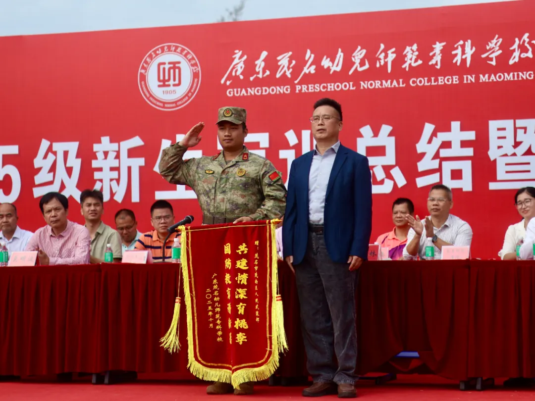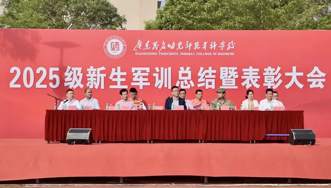 2025年10月26日,广东茂名幼儿师范专科学校2025级新生军训总结暨表彰大会在茂名、高州两校区同步举行。学校党委书记余义才,党委专职副书记吴月明,党委委员、纪委书记莫明波,党委委员、副校长吴东,党委委员、副校长吴标;高州市委常委、人民武装部部长孙召军,茂南区人民武装部军事科参谋梁国林,高州市宝光街道武装部部长潘程出席大会。学校各部门、二级学院负责人,相关教师、辅导员以及全体新生参加了本次大会。