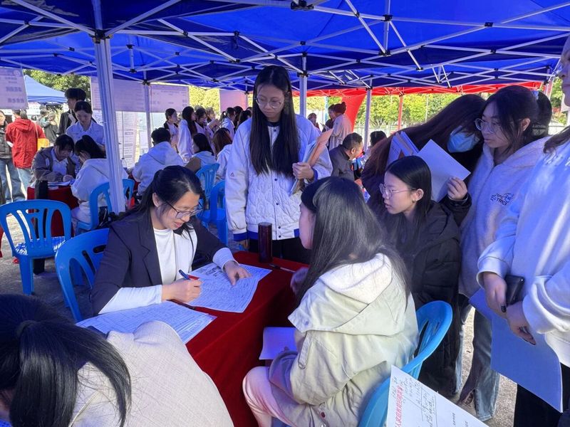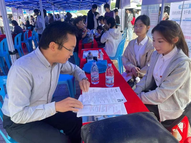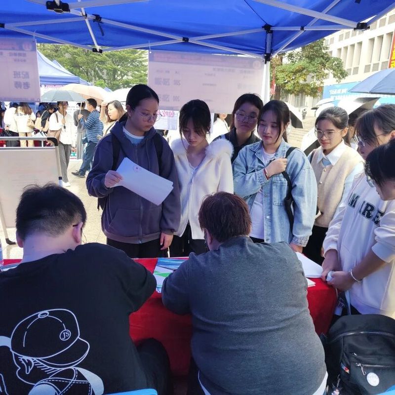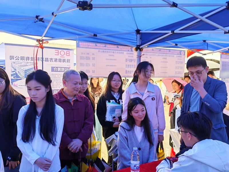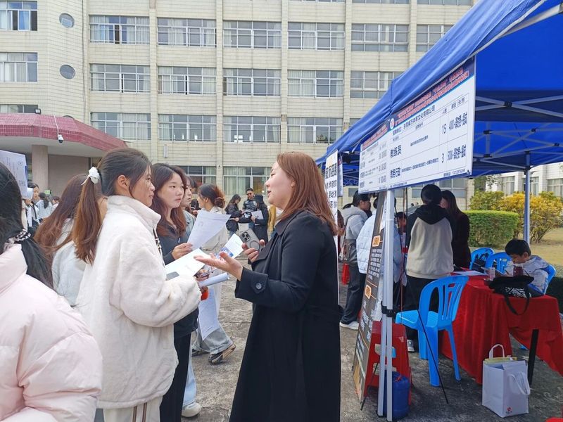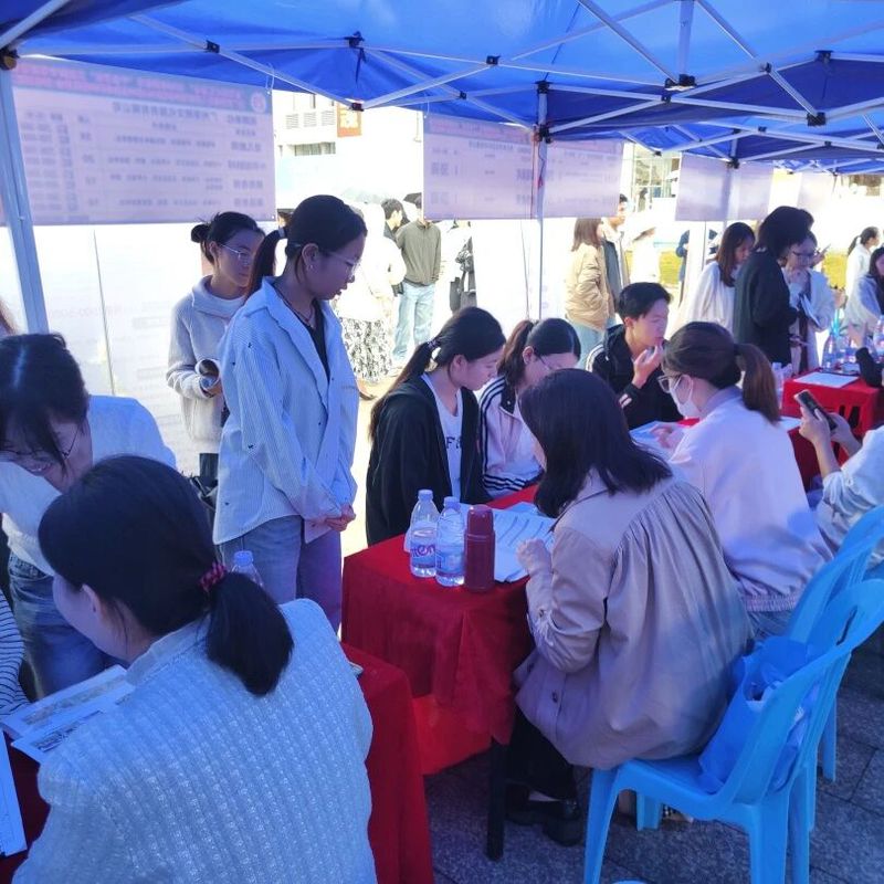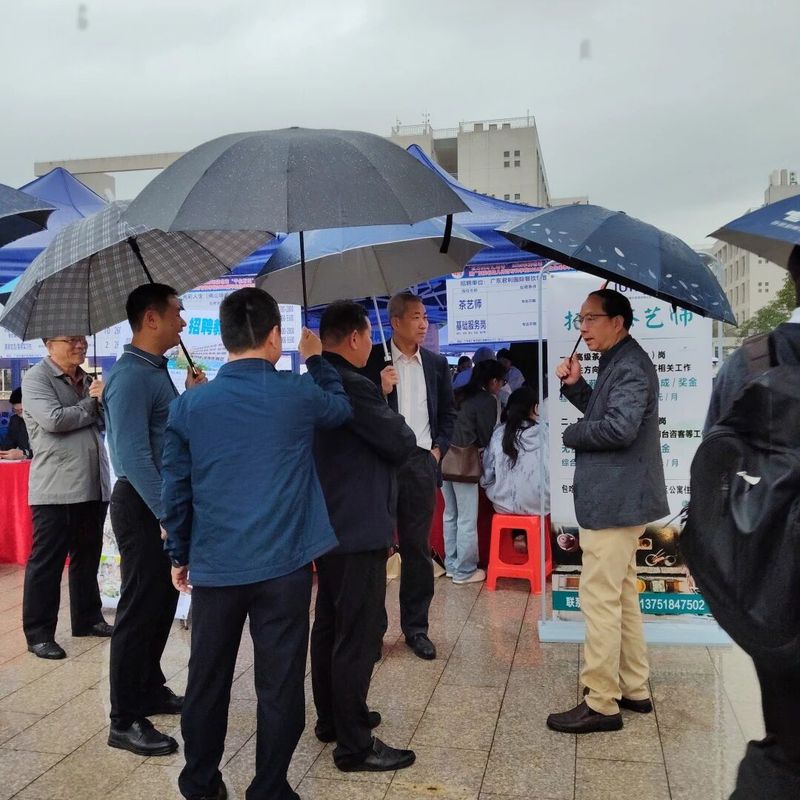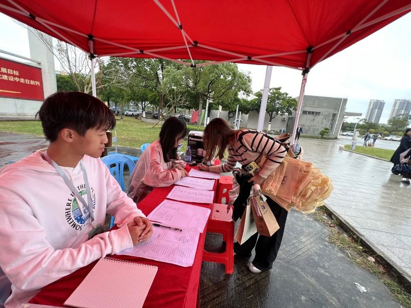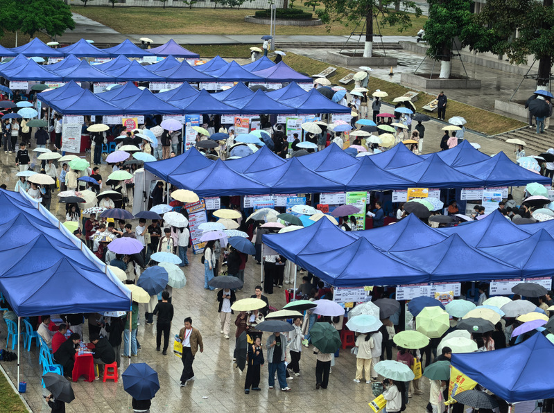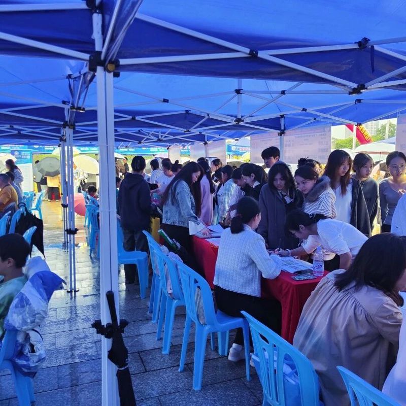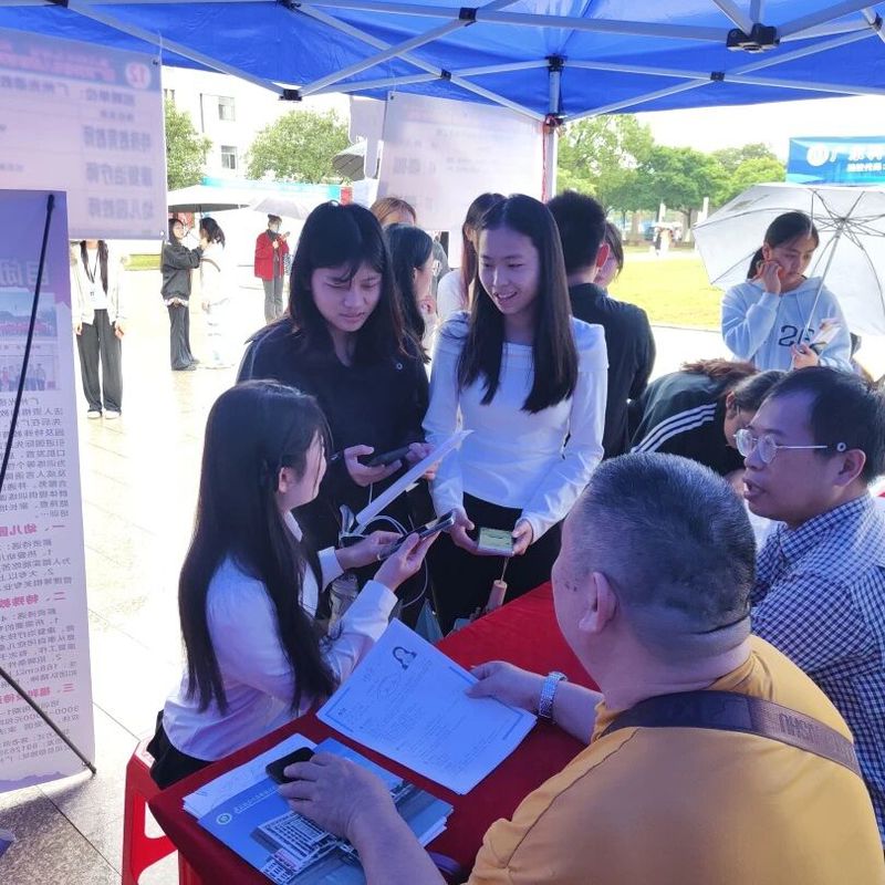 移动的伞阵、忙碌的展位、热切交流的身影,与校园雨景交织相融,既彰显了校企双方的诚意与担当,也构成了校园内一幅温暖且亮眼的动人图景。