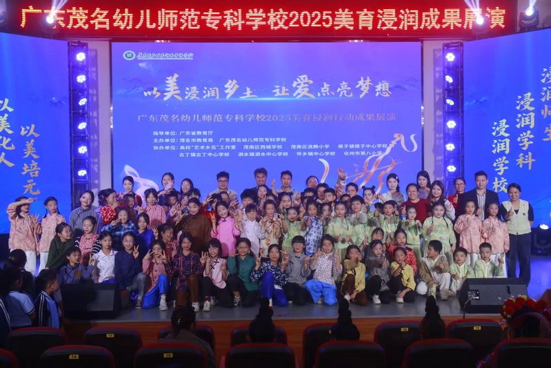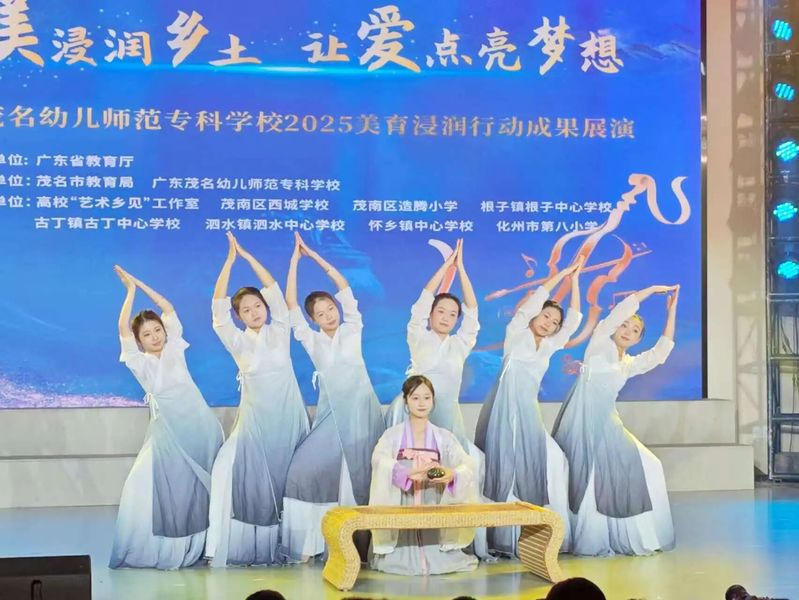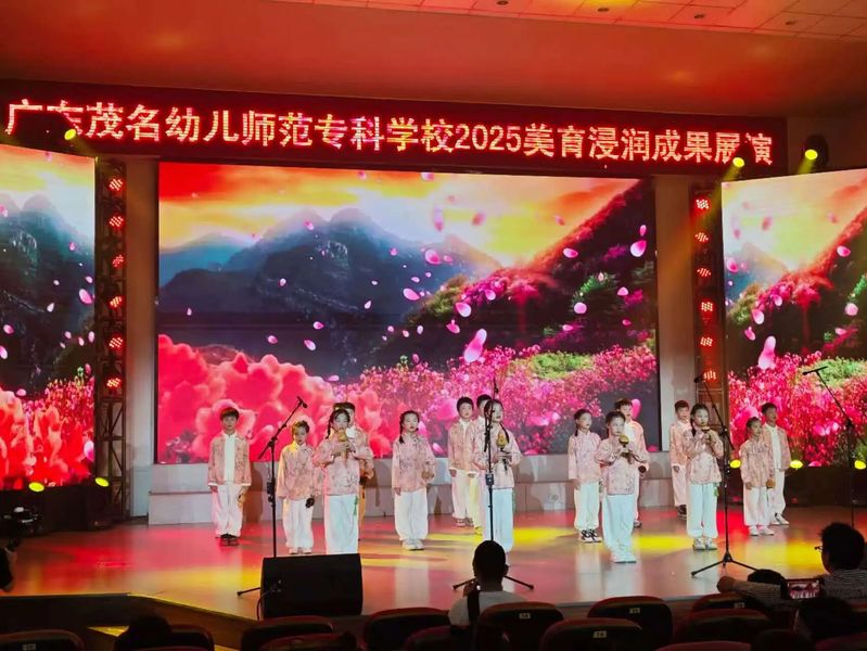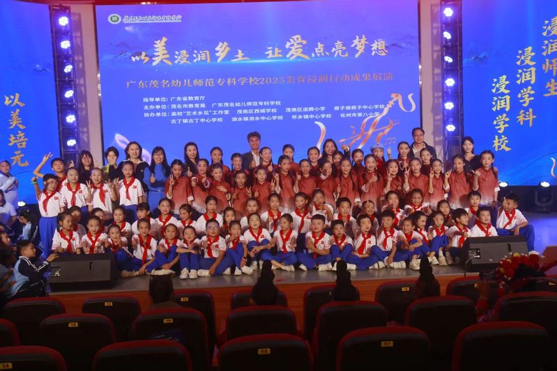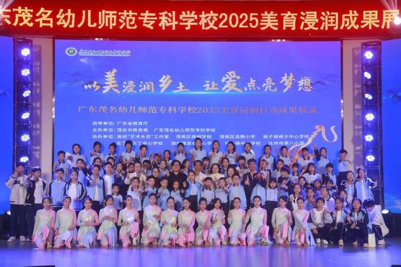 截至目前,广东茂名幼儿师范专科学校实施的美育浸润行动已覆盖4个县区、5个重点镇,重点帮扶7所学校,逐步构建起“支教赋能+师资培育+社团孵化+活动引领”四位一体的美育帮扶体系,取得扎实成效。音乐教育方面,学校协助组建了怀乡中心学校“千人陶笛”社团、化州八小500人韵律操社团,推动建成校际合唱队6支、舞蹈队20余支、乐器社团4个,班级合唱在各校广泛开展。美术教育方面,学校助力多镇完成校园美育环境改造,组织开展美术书法活动,累计推荐师生作品2000余件参赛,获奖300余项;并深入古丁、泗水、怀乡等镇开展教师书写技能培训,从一年级起步推广规范书写。此外,学校深入挖掘地方红色资源,创排革命题材音乐剧《怀乡起义》,并将首演设在怀乡镇,通过艺术演绎革命历史,实现“以美育美、以美传情、以美铸魂”的育人目标。