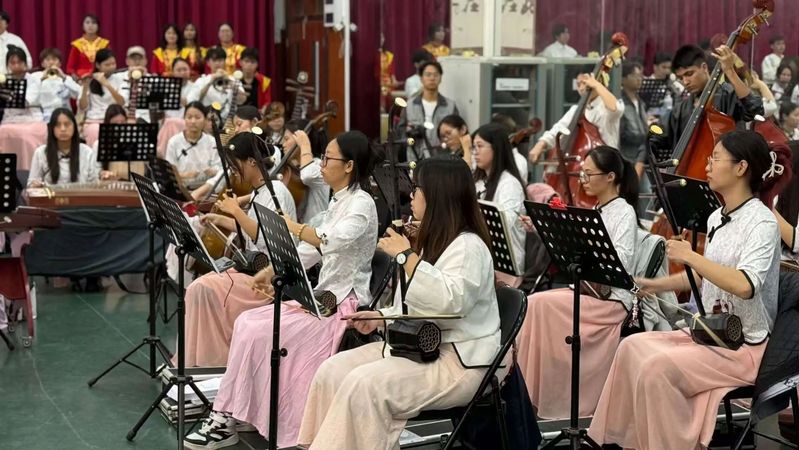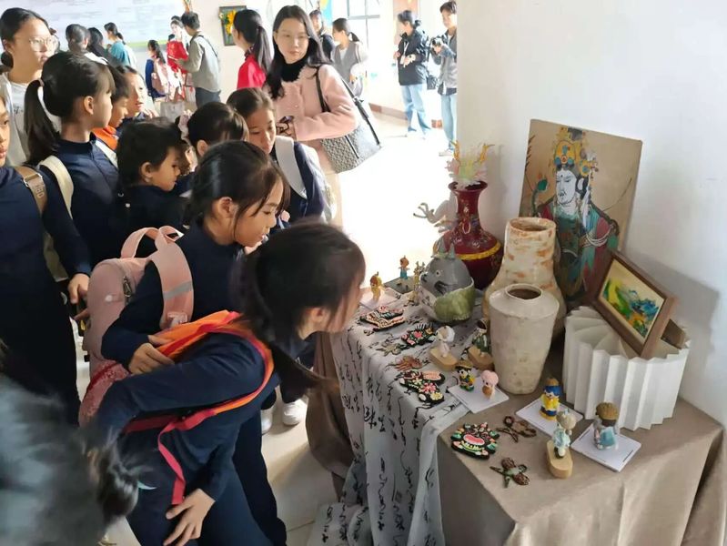 当天上午9:00,来自茂名地区各乡镇7所项目学校的师生汇聚于广东茂名幼儿师范专科学校茂名校区,开启了一场生动而深刻的美育沉浸之旅。师生们穿梭于非遗创排基地、交响乐团排练厅、民族管弦乐坊、手工艺术展区以及非遗文创设计空间,感受民乐的音韵、观赏非遗技艺的巧思。每一个场馆都成为美育的生动课堂,孩子们在互动中启迪审美,在体验中激发创造。