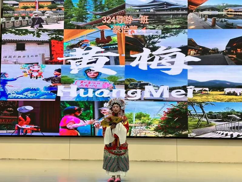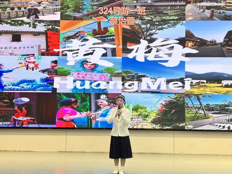 才艺展示环节精彩纷呈、亮点频出。选手们各施所长,黄梅戏经典唱段婉转悠扬,诗歌朗诵铿锵有力,创意解说生动活泼,将导游职业特色与个人才艺完美结合,既展现了扎实的专业功底,也彰显了新时代青年的多元风采,赢得现场评委与观众的阵阵掌声。