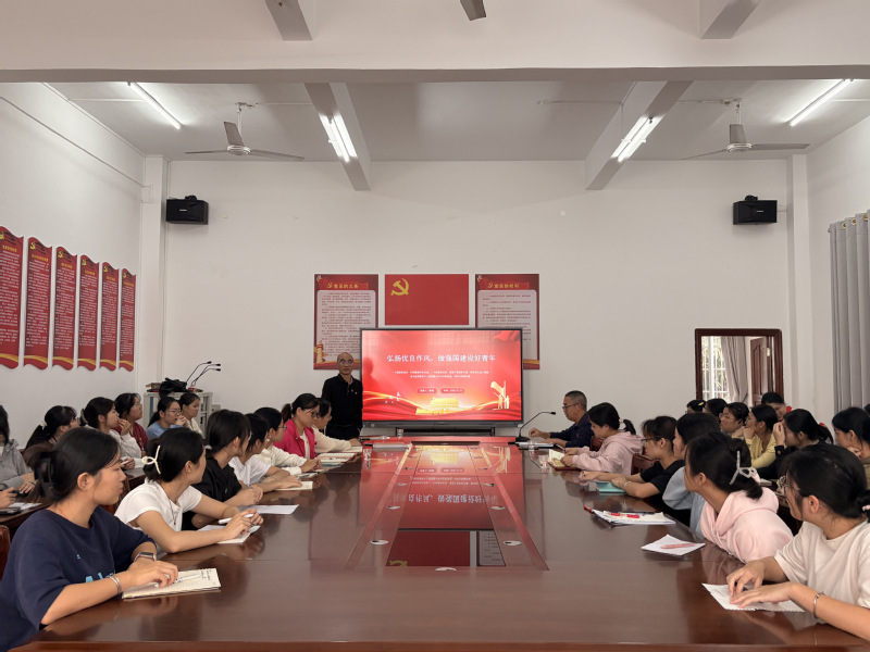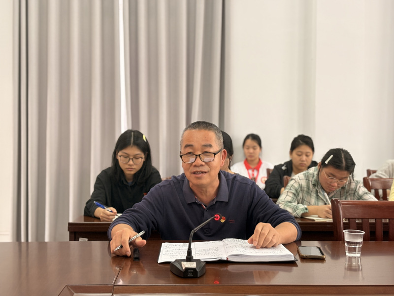 2025年12月22日下午,学校党委委员、工会主席、图书馆馆长陈德到文学院党宣讲“弘扬优良作风,做强国建设好青年”专题党课。文学院辅导员、学生预备党员及入党积极分子参加学习。本次学习活动由文学院党总支部书记苏文胜主持。