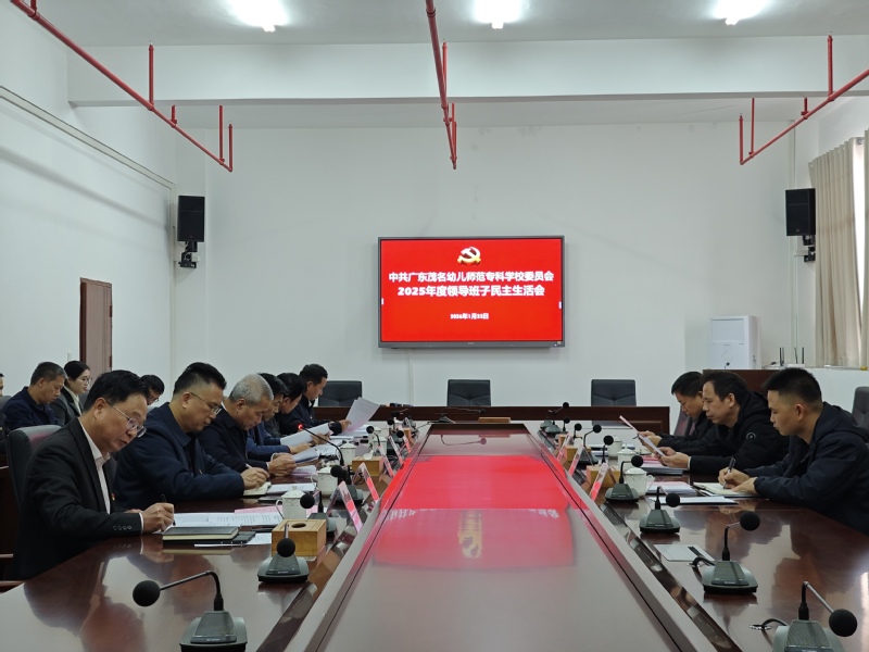 1月23日,广东茂名幼儿师范专科学校党委领导班子民主生活会在茂名校区弘文楼609室召开。茂名市教育局四级调研员宋一帆、市纪委监委第二监督检查室三级主任科员曾文鸿、市人民政府教育督导室一级主任科员周建军到会指导。学校党委书记余义才,党委副书记、校长姚大斌,党委专职副书记吴月明,党委委员、纪委书记莫明波,党委委员、副校长吴东,党委委员、副校长吴标出席会议,党政办公室、组织人事部、党委宣传部、学校工会负责同志列席会议。会议由余义才主持。