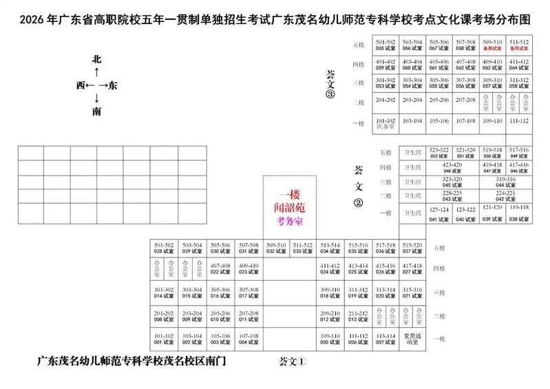 1、文化课考场分布