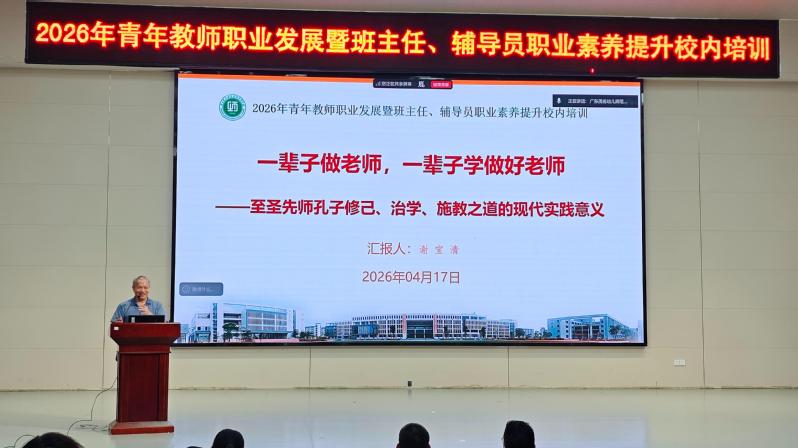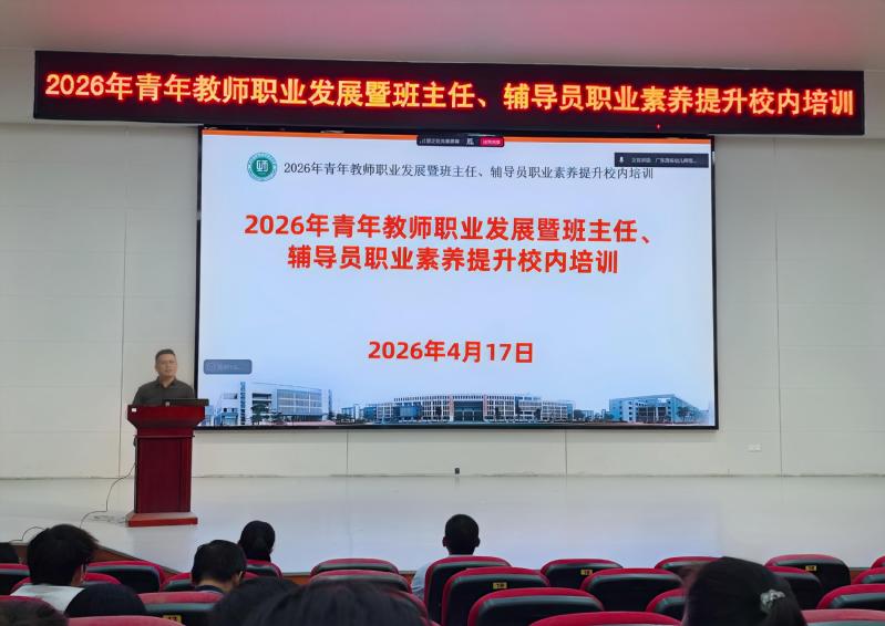为加强新时代青年教师思想政治工作,助力青年教师职业成长,提升班主任、辅导员职业素养,为学校“十五五”高质量发展夯实师资基础,4月17日,我校组织人事部联合学生工作部、校团委,在茂名校区闻韶苑、高州校区会堂,开展2026年青年教师职业发展暨班主任、辅导员职业素养提升校内培训,全校40岁以下青年教师参与培训。学校党委专职副书记吴月明出席并作总结发言。学生工作部负责人主持会议。